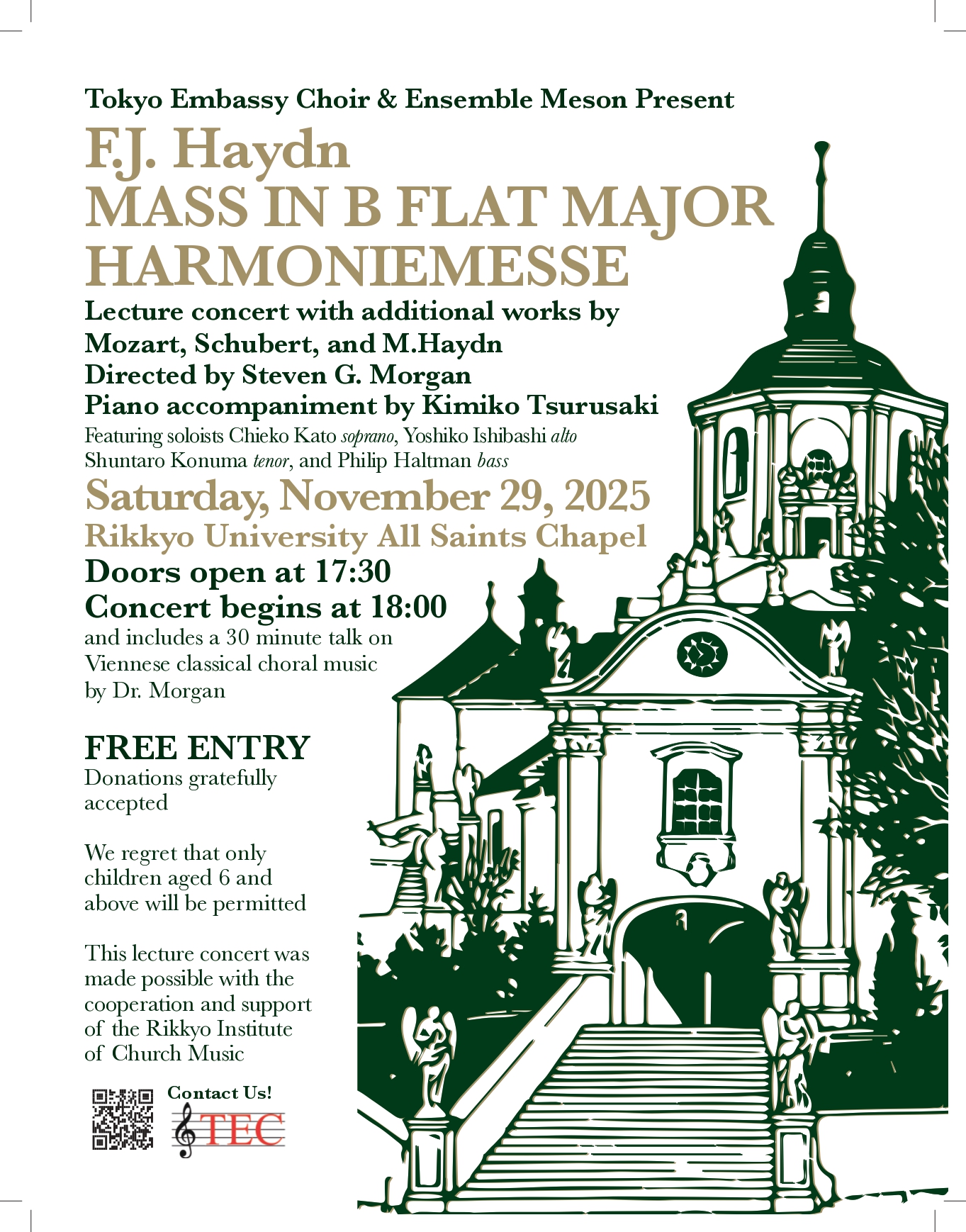 Tokyo Embassy Choir returned to Lilia Hall this year to perform a selection of pieces by Beethoven and Haydn. We were joined by the fabulous Ensemble Meson, making this our first full-orchestra concert since "Seven Last Words" (back in 2017!). Here are a few quotes from the audience: